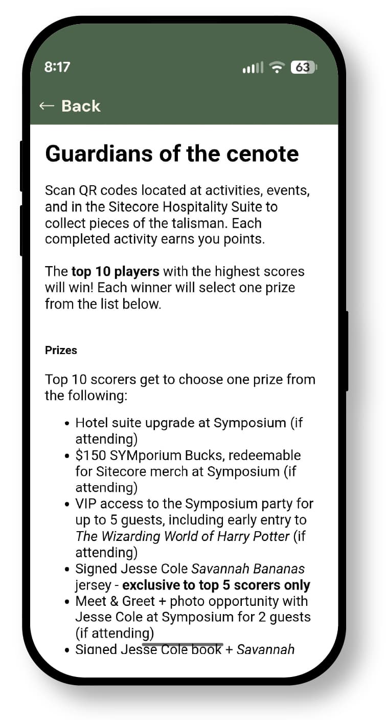I wrote and designed the game around elements of the gorgeous location, planned activities, and key opportunities to meet Sitecore leaders.